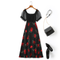 Plus Size Black Floral Midi Dress