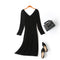 Iolanthe Black Criss Cross V Neck Waist Tie Swing Long Sleeve Dress