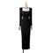 Plus Size Black Floral Embroidered Long Sleeve Evening Dress