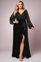 Zaya Plus Size Red Off Shoulder Long Sleeve Evening Dress