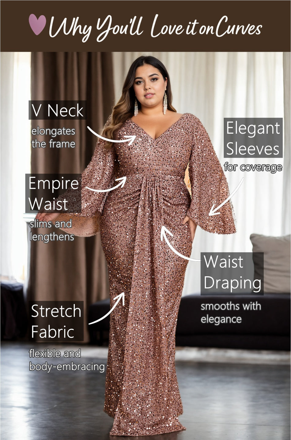 Quinn Plus Size Drape Long Sleeve Evening Dress