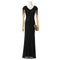 Show off your elegance in muted gold and soft gathers. A demure mid sleeve length meets an alluring see through V neck line that will show off your curves. An A-line dress hem helps cover extra bulges and provides comfort throughout your formal event!