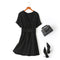 Odessa Plus Size V Neck Buttons Back Waist Tie Short Sleeve Dress (Green, Black)